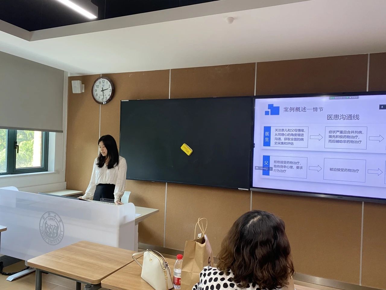 在分组讨论中,各组不同专业的老师各抒己见,有竞争,更有互补互助,讨论进行得热火朝天,最终每组选定病例,派代表上台汇报教案初步设计方案。