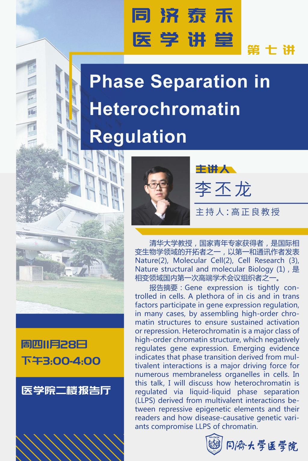 泰禾医学讲堂第7讲:Phase separation in heterochromatin regulation