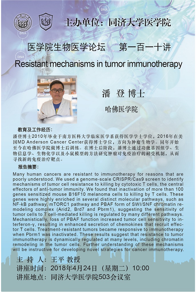 生物医学论坛第110讲:Resistant mechanisms in tumor immunotherapy