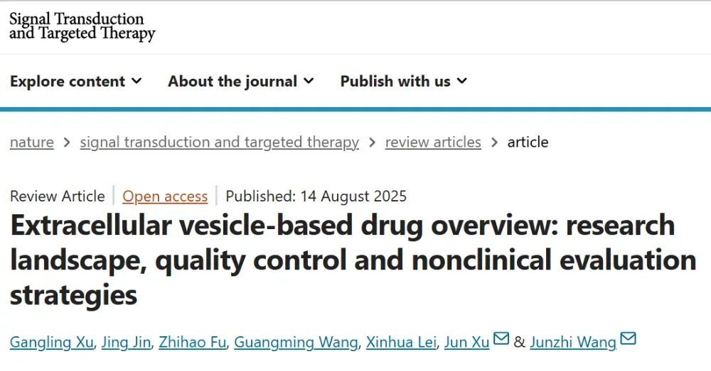 中国食品药品检定研究院王军志院士和太阳成集团tyc33455cc官网徐俊教授等人总结了EVs药物的临床转化和工艺开发研究现状,并提出质量控制策略和非临床评估,以期为EVs产品的开发和评估提供参考。相关内容以“Extracellular vesicle-based drug overview: research landscape, quality control and nonclinical evaluation strategies”为题发表在《Signal Transduction and Targeted Therapy》上。
