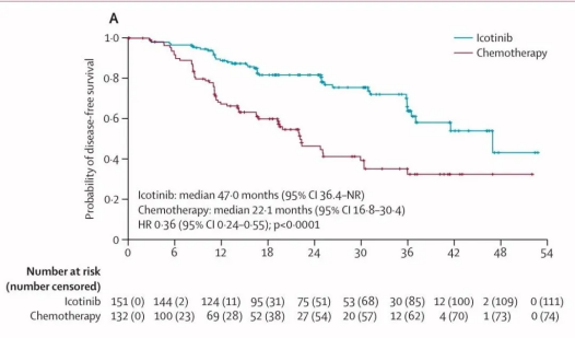 EVIDENCE研究是国内首个非小细胞肺癌术后辅助治疗领域的注册临床研究,由肺科医院肿瘤科周彩存教授和广州医科大学附属第一医院何建行院长共同牵头,全国共29家中心参与,研究历时六年,入组322例II-IIIA期术后EGFR突变阳性受试者,按1:1随机分组,试验组给予EGFR-TKI埃克替尼125mg TID口服治疗2年,对照组给予标准辅助化疗组长春瑞滨/顺铂或培美曲塞/顺铂化疗4周期后随访,直至复发、不耐受或死亡。主要研究终点为无病生存期(DFS),关键次要研究终点为3年和5年DFS生存率、OS和安全性。
