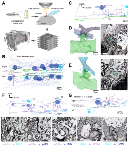 Fig. 2. Connectome of spinal escape neural circuit revealed by SBEM.