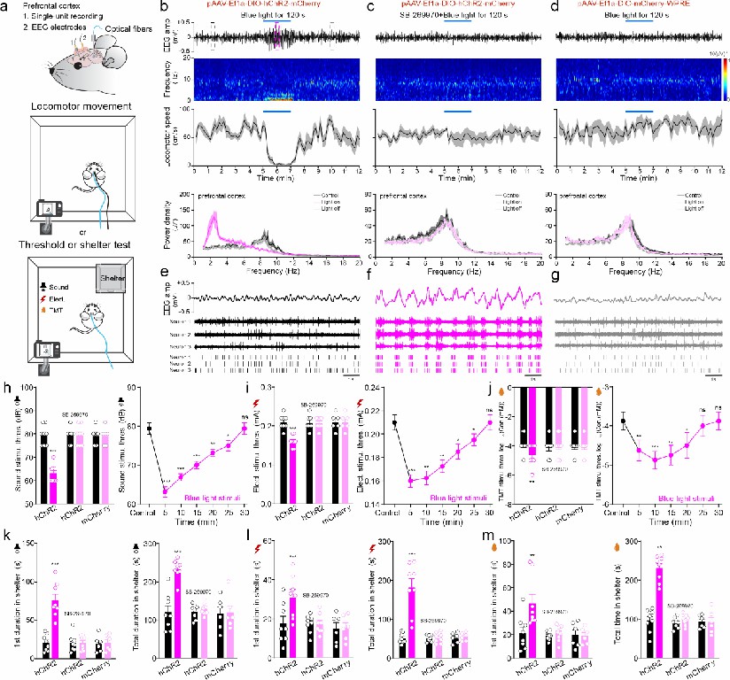 图3 持续光遗传激活DRN 5-HT神经元诱导小鼠大脑同步状态和警觉行为