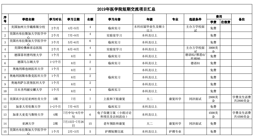 ①项目交流时间段内应正在临床实习或已经完成临床实习;