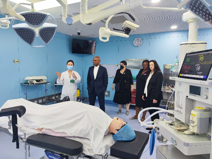After the meeting, the delegationvisitedthe clinical training center for nursing education at the First Maternity and Infant Hospital, where in-depth exchanges regarding practical teaching arrangements were held.