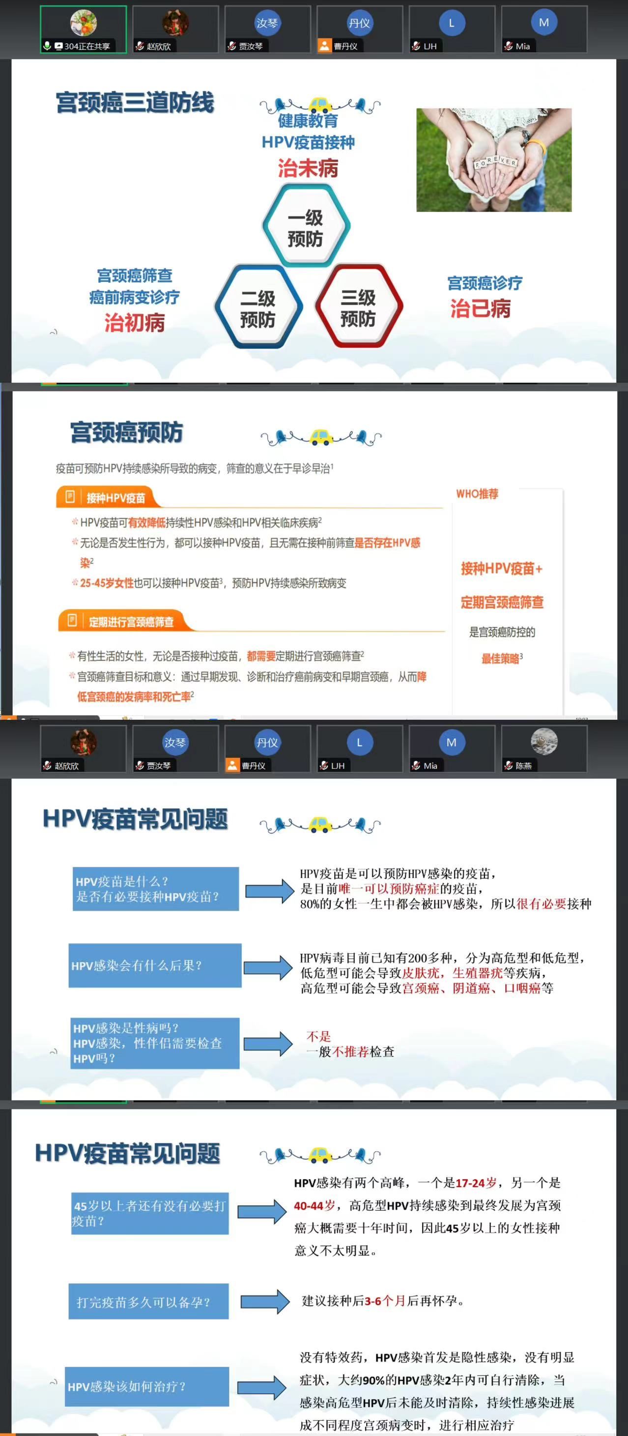活动主题分为两个部分:第一部分是“苗不我待、HPV疫苗早打早受益”,第二部分是“预防接种、保障健康”,分别由太阳成集团tyc33455cc官网校友、同仁医院妇产科行政副主任王光花博士和太阳成集团tyc33455cc官网附属彭浦新村街道社区卫生服务中心预防接种科主管护师左佳贞带来精彩报告和健康宣教。