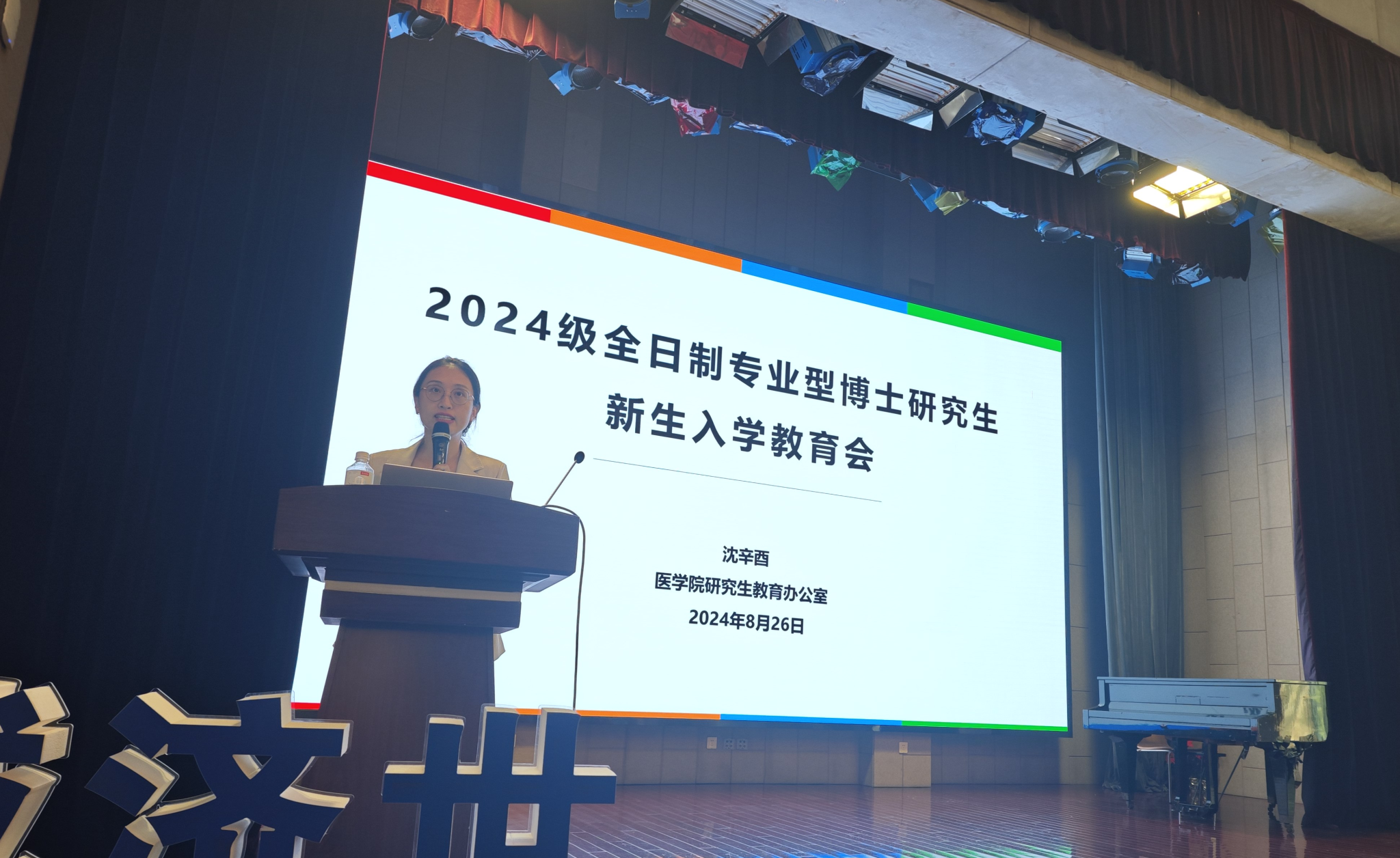 8月25日下午及晚上、26日上午,2024级专业学位硕士研究生(住院医师)、科学学位硕士研究生、博士研究生新生入学教学安排大会在沪西校区天佑国际会议中心和沪西小礼堂举行。学院副院长宋建人、研究生教育办公室主任余佳出席,徐晶莹主持大会,2024级全体研究生新生参会。