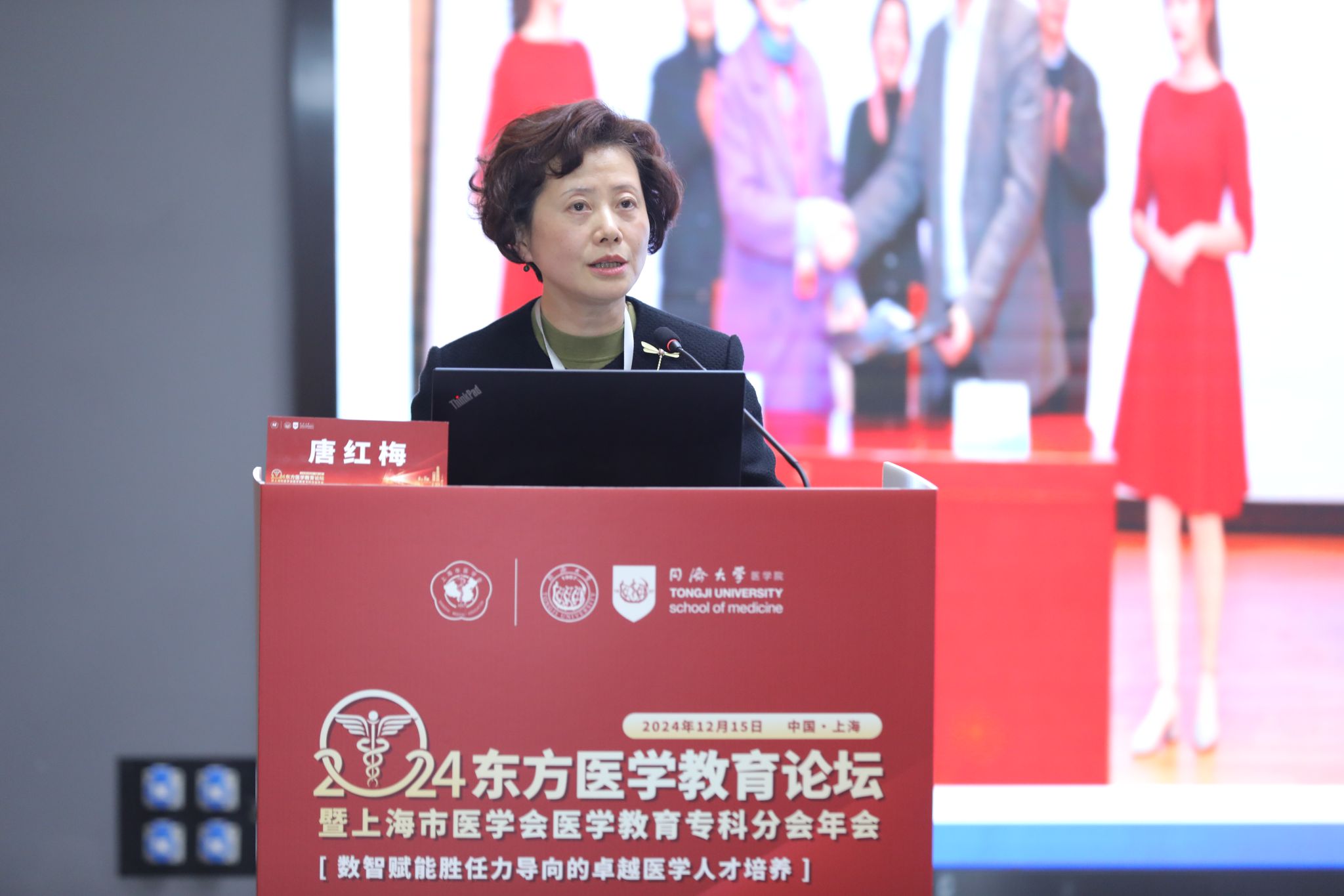 第二环节的主旨报告环节由上海市医学会医学教育专科分会副主任委员、上海健康太阳成集团tyc33455cc官网党委副书记、副校长唐红梅主持。
