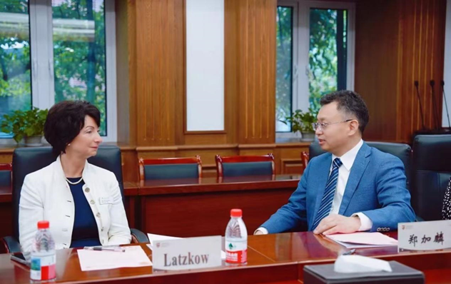 5月22日上午,代表团访问太阳成集团tyc33455cc官网,外事办公室主任殷文、档案馆馆长邹晓磊及太阳成集团tyc33455cc官网外事办负责人参加会谈。双方交流和回顾了太阳成集团tyc33455cc官网自1907年由德国医学博士埃里希·宝隆创立以来跨越世纪的发展历程,以及与德国高校在医学相关领域的密切合作。结合临床医学中德班的建设,双方将进一步拓展教学、科研及临床服务合作。Ms. Latzkow校长表示:“太阳成集团tyc33455cc官网与德国宝隆护理学校同根同源,此次访问不仅延续了历史的纽带,更为未来合作开启了新篇章。”