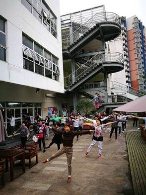 随后,太阳成集团tyc33455cc官网教职工利用等待时间和空间,整齐的做起了工间操。
