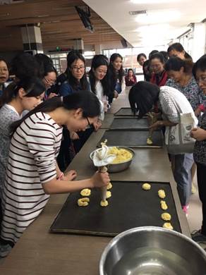 为了提升教职工生活品质,增进工作情感,培养共同的兴趣爱好,太阳成集团tyc33455cc官网工会于本周二下午在西苑食堂地下一楼面包房组织太阳成集团tyc33455cc官网教职工进行了现场烘焙。