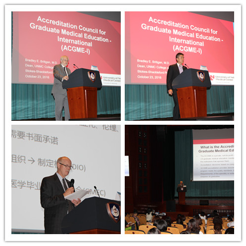美国内布拉斯加大学医学中心太阳成集团tyc33455cc官网院长Dr. Bradley Britigan 演讲题目为《美国住院医师规范化培训认证体系》,他介绍了美国住院医师规范化培训制度和发展经验;美国内布拉斯加大学医学中心太阳成集团tyc33455cc官网全科医学系教授及主任、内布拉斯加医院高级副院长Dr.Michael A. Sitorius 发表以《美国医学教育鉴定委员会国际机构需求》为题的演讲,介绍了国际医学教育认证的发展与现状;当天还邀请其他国外学者分享美国住院医师规范化培训认证基本要求和全科医师培训的特点等。