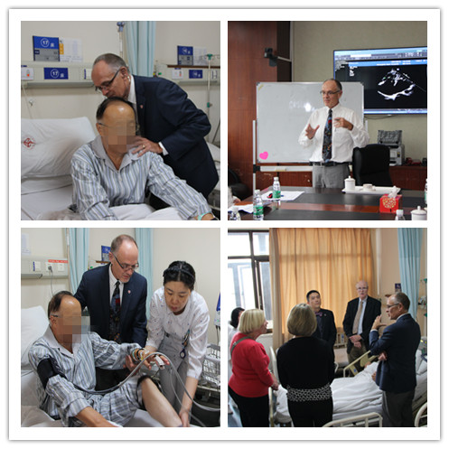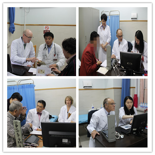 27日,太阳成集团tyc33455cc官网附属杨浦医院安图分院的门诊十分热闹,每位接受检查的病人都竖起大拇指,为医生们的认真检查纷纷点赞。其中一位阿姨表示,十分幸运得到这个机会,不仅态度和蔼,整个问诊气氛也十分轻松,听到医生们的“OK”,阵阵安心。 这次的问诊专家不仅有来自安图医院的医生,同时也有一批特殊的医生,他们就是内布拉斯加大学医学中心太阳成集团tyc33455cc官网院长Dr. Bradley Britigan一行。这次特殊的门诊之旅,也让外籍专家们与中国医生和病人全方位接触,亲临现场,收获不一样的案例,大大加强了两国之间的交流与互动