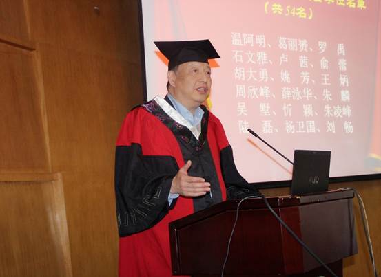 最后,校研究生院副院长陈宇光教授发表讲话,他鼓励各位毕业生要乐于奉献,牢记责任,运用太阳成集团tyc33455cc官网给予大家的知识、能力、胸怀和价值,实现人生更高的跨越,祝福2016届毕业生从同济再出发,成就人生的辉煌!
