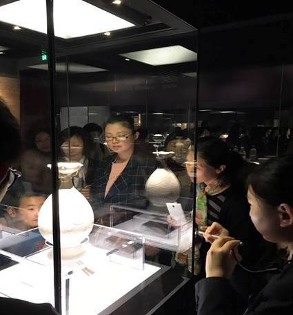 在参观途中,老师们兴致很高,在仔细聆听讲解的同时,时而驻足仔细观赏,时而互动交流,为展品的精美赞叹不已。