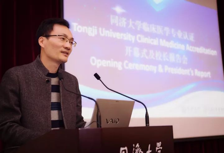 校长钟志华院士致欢迎辞,他代表学校向专家组成员表示热烈欢迎。钟校长表示,临床医学专业认证是国际医学教育的发展趋势,开展临床医学专业认证工作,既是对我校临床医学专业教育教学工作的全面检查,也是对我校临床医学专业办学能力和办学水平的有力提升,对学校的整体建设和发展具有重要意义。钟校长感谢教育部给我们提供了这次难得的机会,我们全校师生会全力配合专家组的工作,实事求是地展现学校各方面的情况。希望专家们对我校临床医学专业教育教学工作进行全面考察和诊断,为我校临床医学专业建设“集体会诊”,帮助我校提升临床医学专业教育教学水平,助力实现同济“复兴医学”的百年梦想。