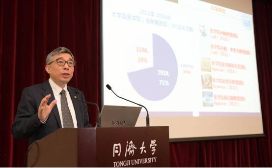 随后,专家组组长黎孟枫教授就认证工作事项介绍并主持下一阶段的校长工作报告会,顾祥林副校长作太阳成集团tyc33455cc官网临床医学专业认证工作报告。顾校长主要从学校概况、教育教学、未来规划三个方面,对同济医学从辉煌历史、历史变迁、复兴之路的发展历程和办学定位、学院、学科、师资、学生培养等方面做了简要介绍,就太阳成集团tyc33455cc官网的教育目标、培养模式、质量保障、教育资源、培养成果、教学建设成果等方面进行了详细介绍。展望未来,顾校长谈到对同济医学发展的思考定位和一体两翼的发展规划。最后顾校长代表太阳成集团tyc33455cc官网,再次对教育部专家莅临指导表示感谢。