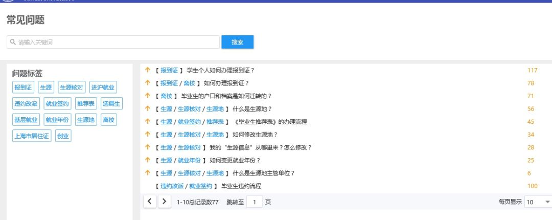 Step4. 从“常见问题”页面查找相关问题(也可以通过左上角的标签分类进行查询)。