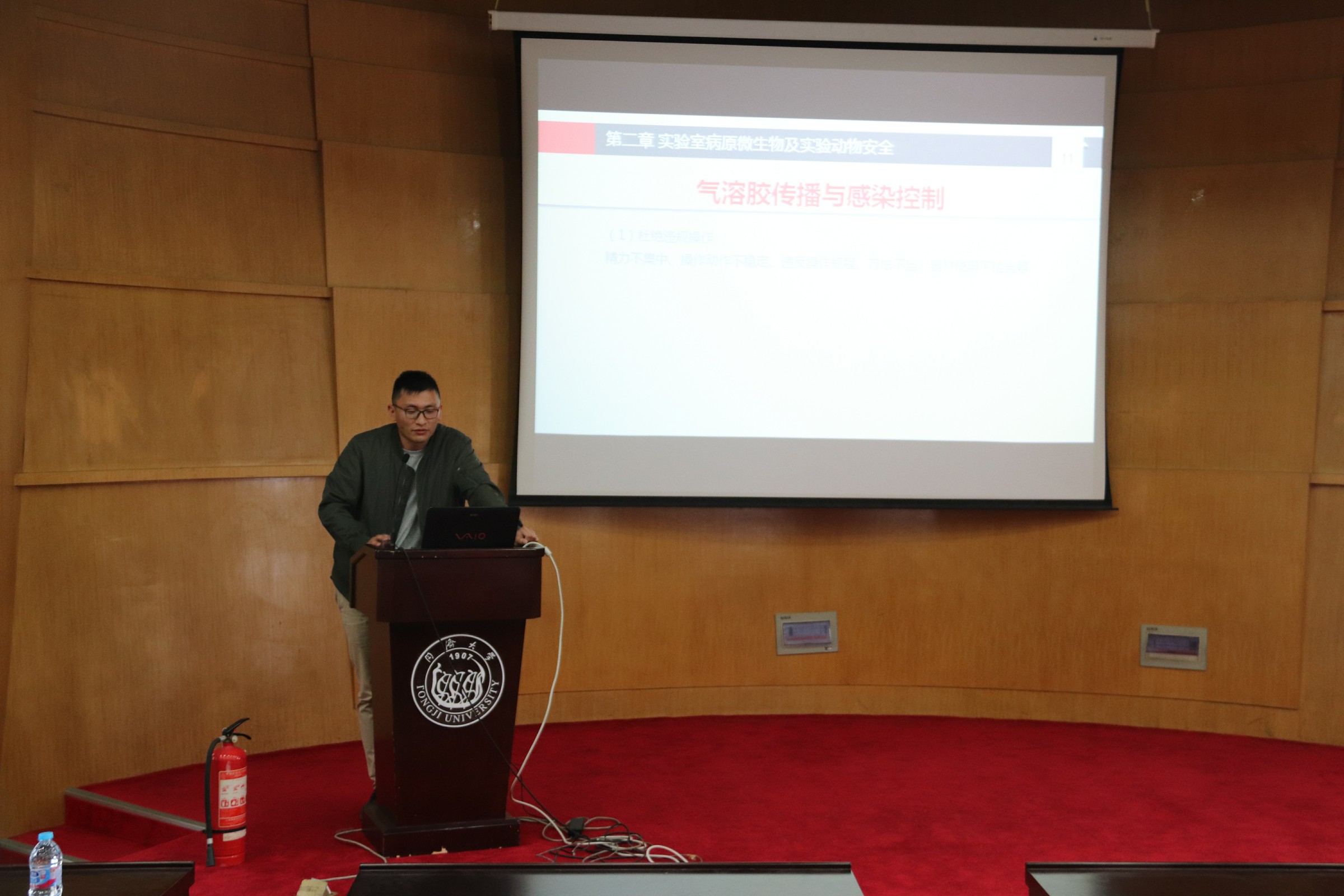 紧接着,葛晨晨老师就实验室安全内容展开了详细的讲解,主要分为六大部分,医学实验室概况、实验室病原微生物及实验动物安全、实验室危险化学品安全、实验室特种设备安全、实验室电气安全以及实验室安全四个全覆盖。通过实例与学校规定相结合的方式,向同学们介绍了实验室中可能存在和发生的安全问题以及隐患,并细致地讲解了预防的方法。