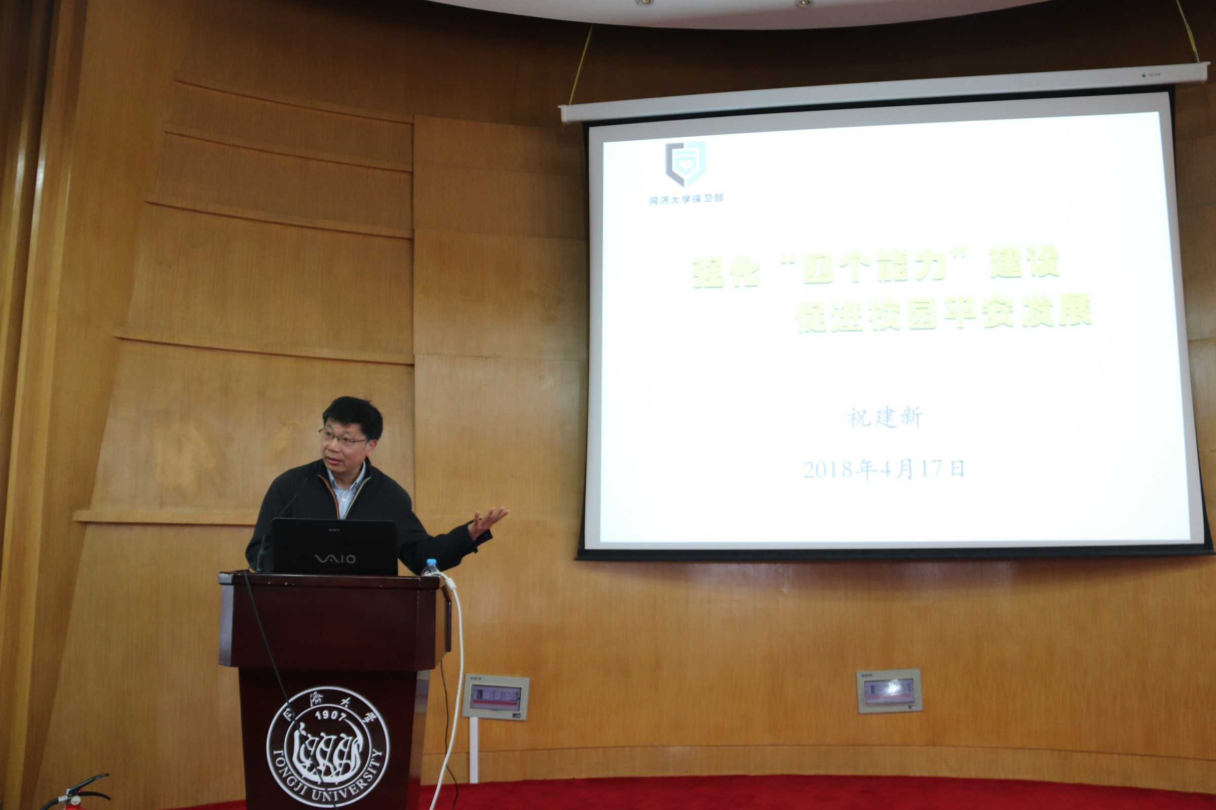 祝建新老师就消防安全问题做了深入的讲述,他使用许多生动的实例,例如发生在校园中的火灾险情,警醒同学们时刻注意消防安全。他向同学们介绍了火灾发展的变化规律,列举了多种面对火灾险情时的防护和自救方法,指出了解消防安全知识、火灾自救知识将终身受益,安全不仅仅是一项工作,更应该成为一种生活方式。