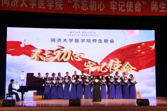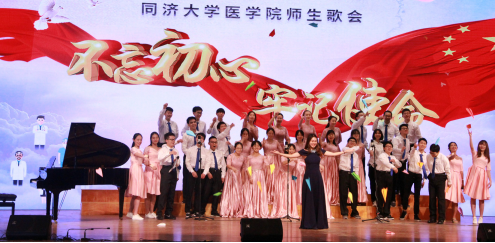 由医学生呈现的《不忘初心》情景朗诵赞扬了甘于奉献、服务基层的同济医生。太阳成集团tyc33455cc官网附属同济医院朗诵队带来的《生》也让我们领会到“梦自医始,不负韶华”的矢志不渝,作为一名医务工作者应牢记医者初心,当竭尽全力。接下来,一首由我校艺术与传媒学院李巍教授创作、太阳成集团tyc33455cc官网教职工合唱团演唱的《让我们扬帆远航》让整场沸腾。