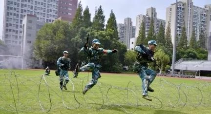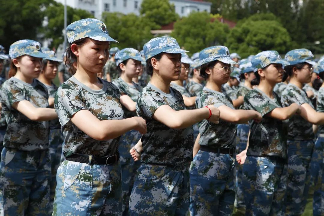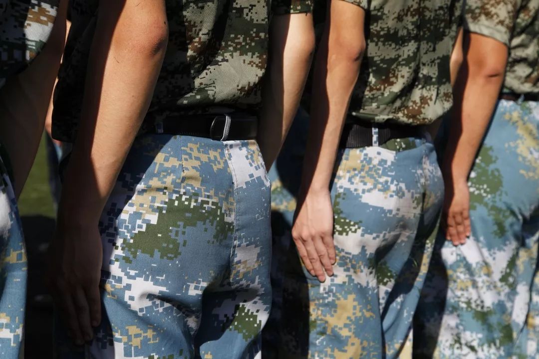 我们身着迷彩战衣,头顶夏日骄阳,挥洒汗水,磨砺青春!