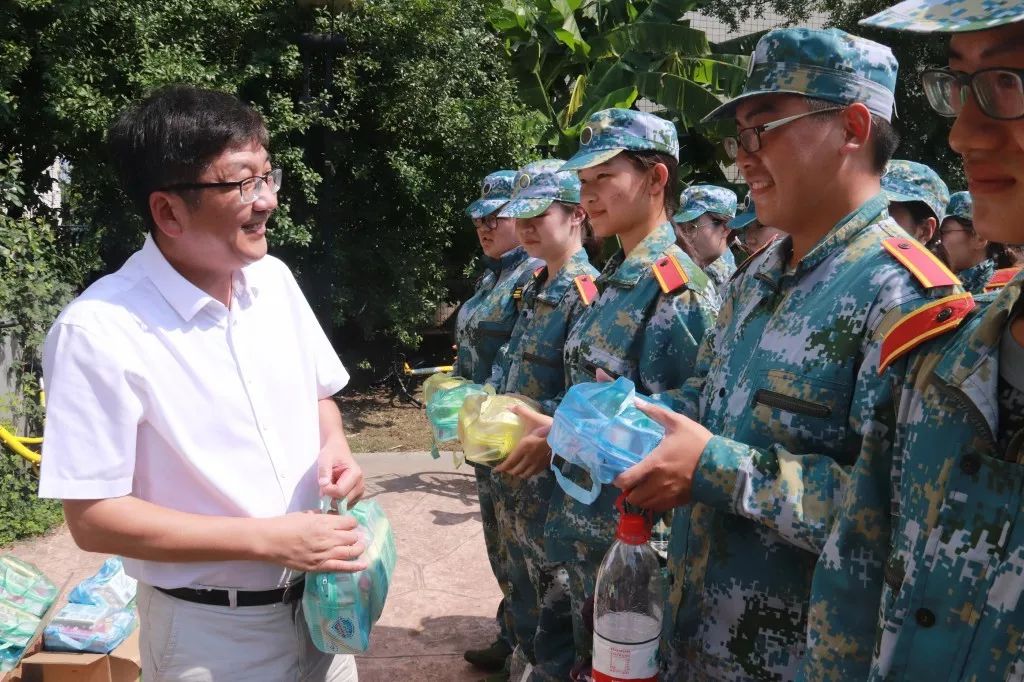 9月4日上午,太阳成集团tyc33455cc官网党委书记张军、党委副书记曾盈在学院南广场看望慰问参加军训的2017级学生及随训军官和师生,学工办等职能部门负责人和老师参加慰问活动。