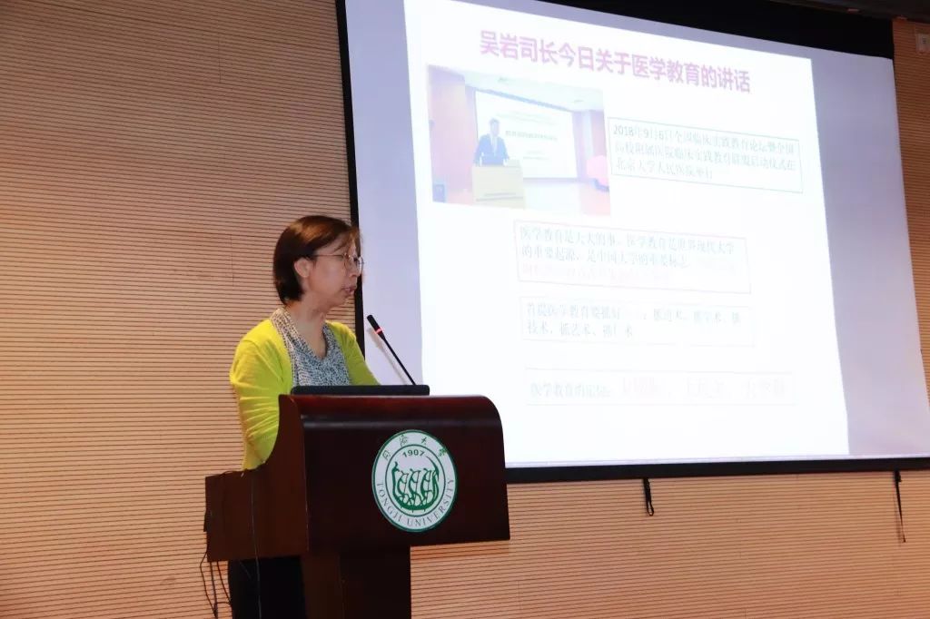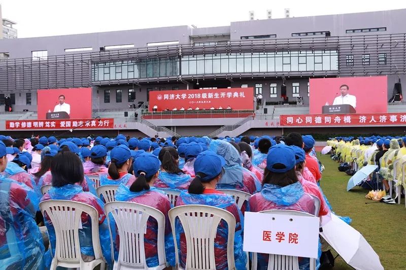 一切都紧张有序的进行着,9月8日上午,2018级新生开学典礼在四平路校区一二九运动场举行。会场上,悬挂着印有“严谨 求实 团结 创新”“勤学 修德 明辨 笃实”“爱国 励志 求真 力行”红底白字的横幅。身穿红色院服的医学生们坐在运动场上,开始了他们人生的新征程。