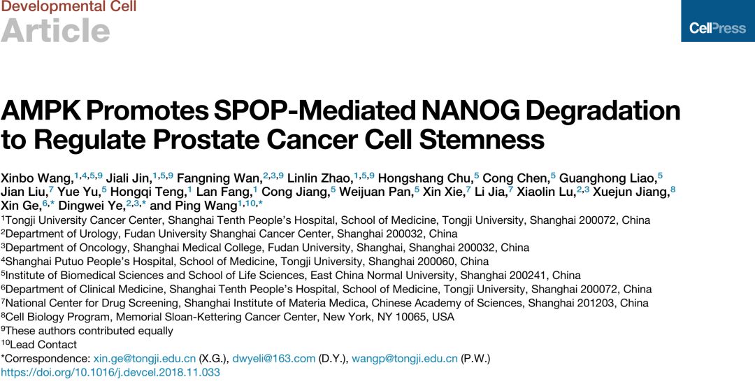 太阳成集团tyc33455cc官网王平教授长期致力于研究泛素化修饰与肿瘤微环境调控。12月27日最新一期Developmental Cell 杂志在线发表了王平教授团队题为AMPK promotes SPOP-mediated NANOG degradation to regulate prostate cancer cell stemness 的研究论文,从蛋白质翻译后修饰的角度阐明了肿瘤干细胞调控的新机制及其在肿瘤发生发展中的作用。