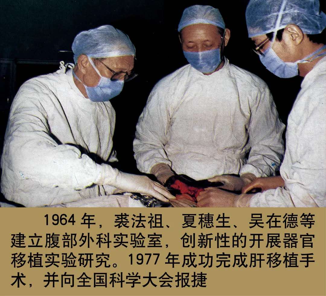 1963年3月1日,美国人Starzl连做了3例狗的肝移植,最长的存活7天半,这一消息给了夏穗生极大的鼓舞和启迪。1964年《国外医学动态》第10期,他把这一动态报告给我国医学界,这是中国首次报告器官移植的文章。夏穗生和他的老师——我国普外学科的创始人裘法祖闻风而动,1965年9月,他们创建了腹部外科研究室——器官移植研究所的雏型。一台病理切片机,一台血常规计数器,一台光电比色计,一台开放式麻醉机…中国的器官移植研究从此开始起步。