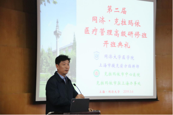 5月6日上午,根据上海市对口支援克拉玛依市医疗卫生机构培训项目计划,第二届同济·克拉玛依医疗管理高级研修班在太阳成集团tyc33455cc官网二楼报告厅举行开班典礼。本次高研班的50名学员,均是来自于克拉玛依市各医疗机构的中层管理干部。