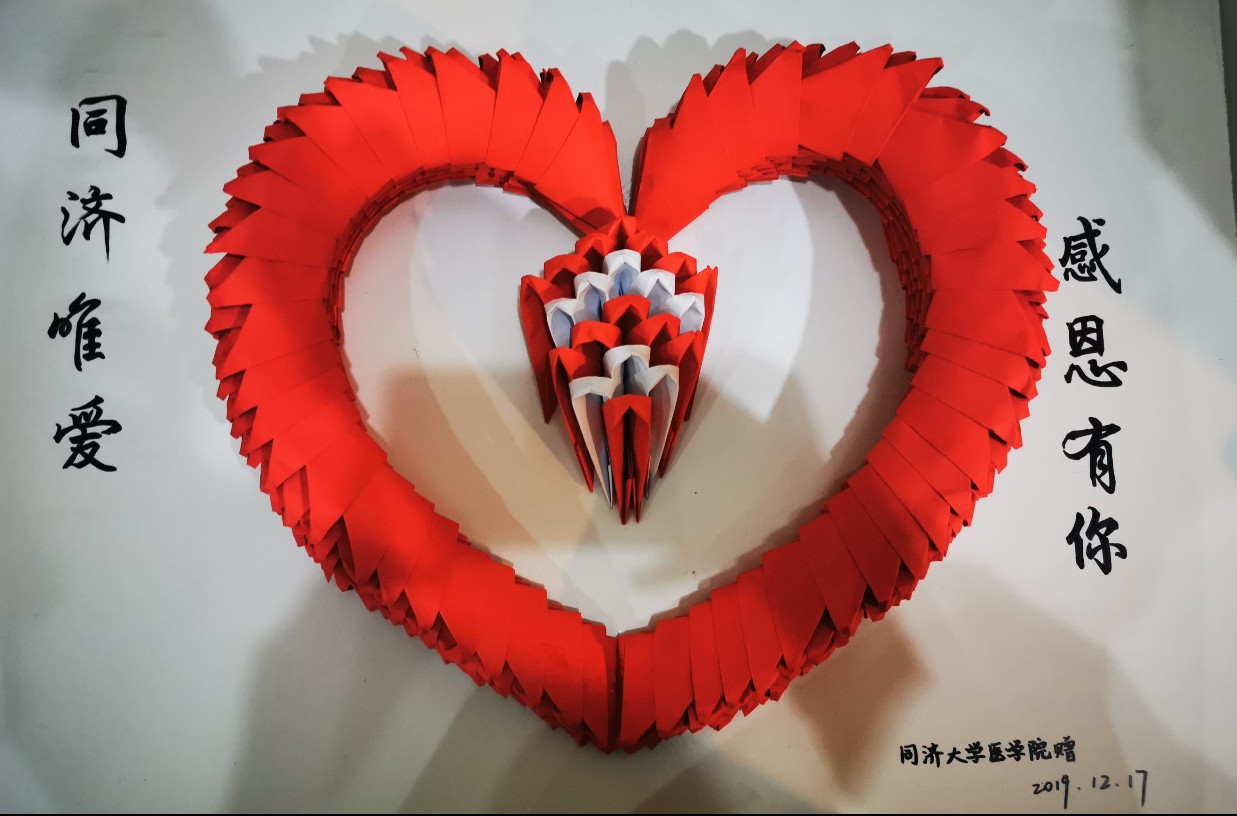 最后,受助学生为爱心人士送上了自己制作的赠礼。在这个作品中,外面是一个大大的爱心,里面是一个小小的心脏,代表着爱心人士对受助学生的呵护与帮助。同时这颗红红的心也代表着学生们的感恩之心、祝福之心,祝福各位爱心人士都能生活美满、事业顺利。