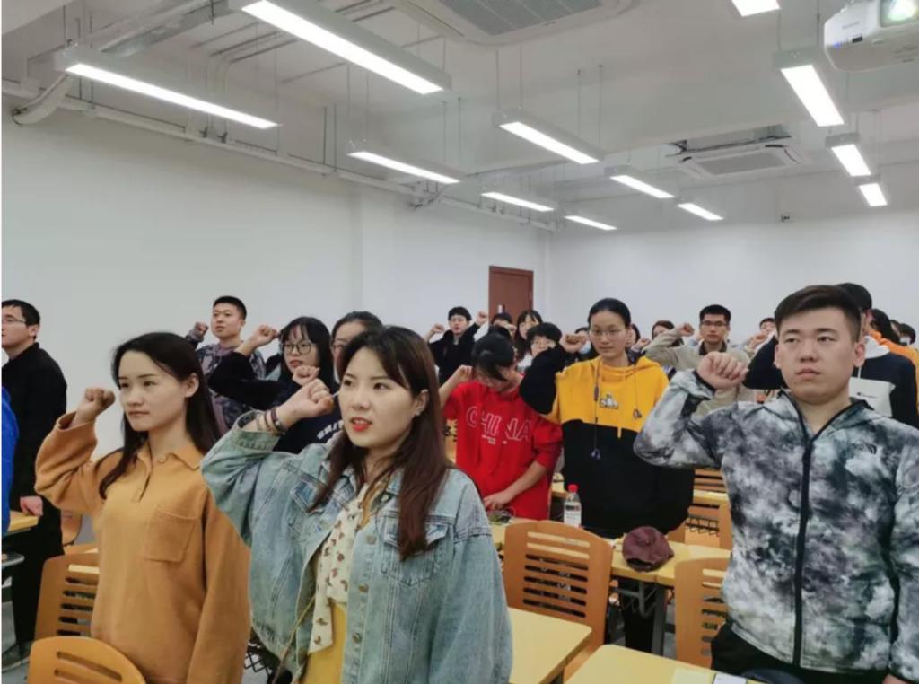 随后,全体同学合唱团歌并重温入团宣誓词。雄壮激昂的旋律和铿锵有力的誓词,让大家感受到了新时代团员所肩负的历史使命和社会责任。在未来的日子里 ,更要努力提升自己,从不断发展的社会文明中汲取知识智慧,增长本领才干,成为社会主义现代化建设的有用之才。