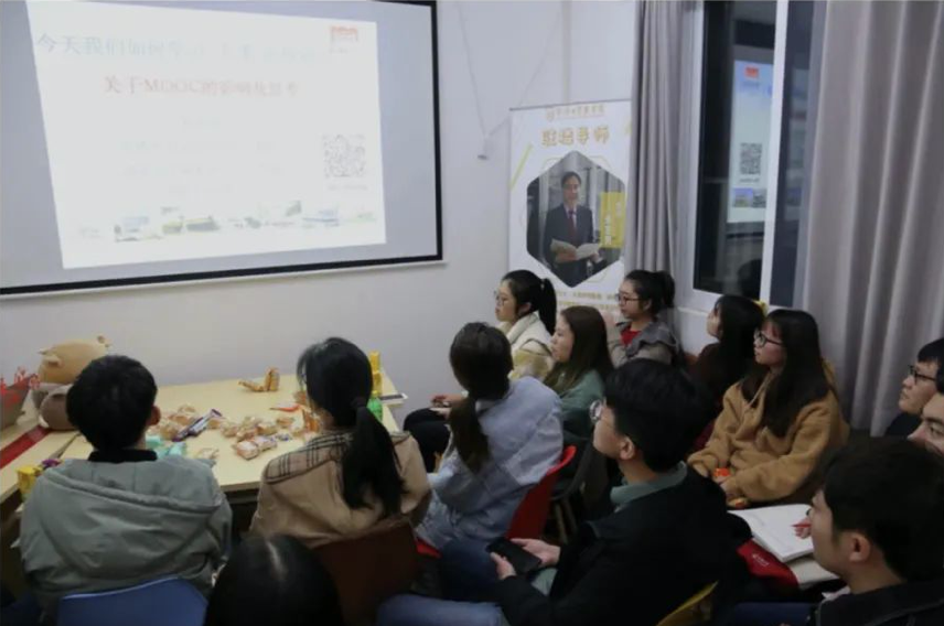 12月2日晚6点,太阳成集团tyc33455cc官网财务处处长、环境学院博士生导师朱志良教授做客驻楼导师讲堂,与20多名学生在沪西校区1号宿舍楼党建活动室一起探讨关于当今互联网时代慕课的学习和科研。