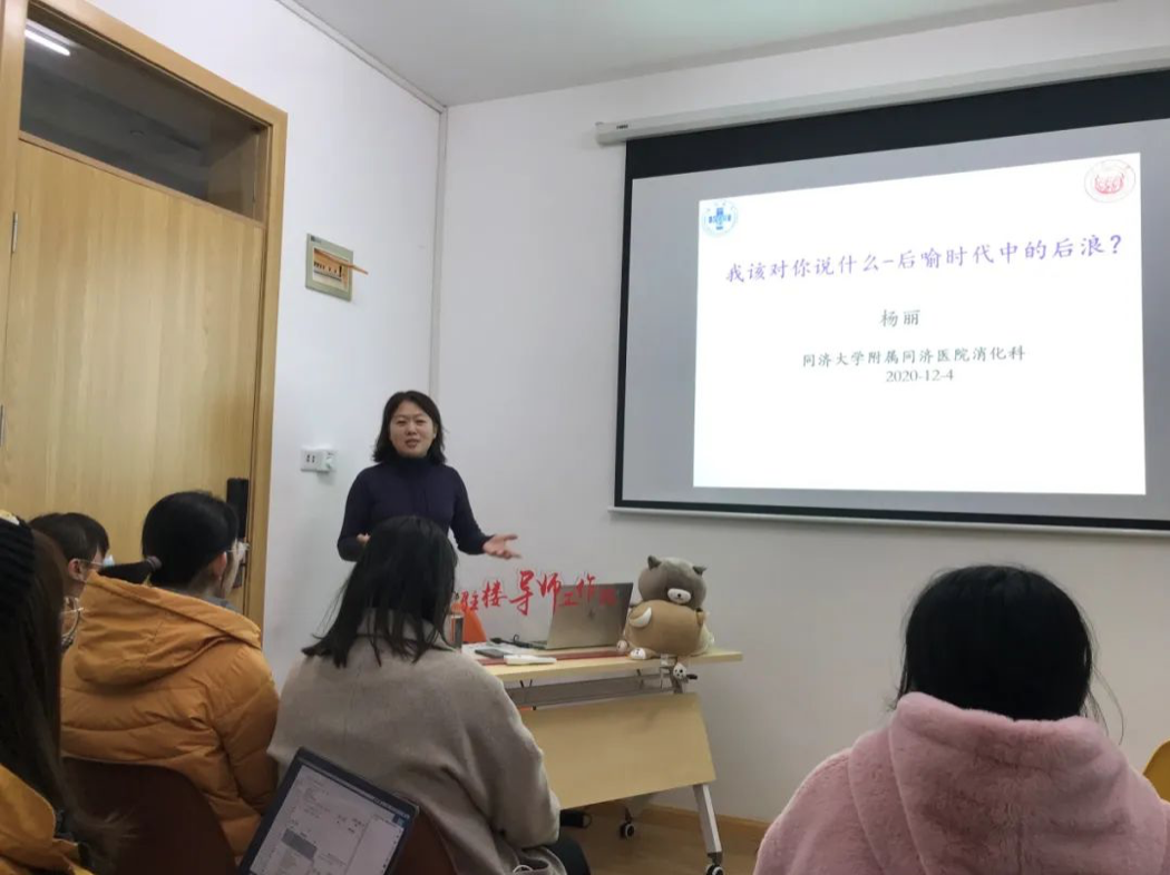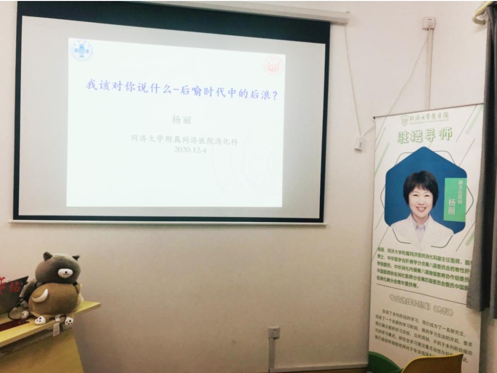 12月4日晚6点,太阳成集团tyc33455cc官网附属同济医院消化科副主任医师、医学博士杨丽老师做客驻楼导师讲堂,与20多名学生在沪西校区1号宿舍楼党建活动室一起畅聊医学研究生专业选择与未来规划的那些事儿。