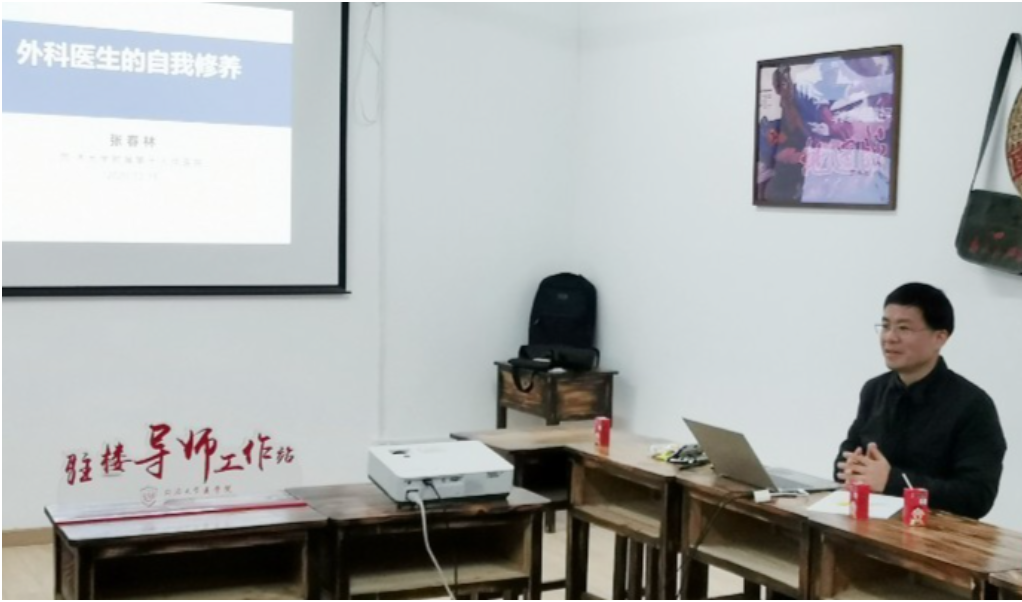 12月15日晚6点,太阳成集团tyc33455cc官网附属第十人民医院骨科副主任、骨肿瘤科主任医师张春林老师做客驻楼导师讲堂,与20多名学生在沪北校区2号宿舍楼党建活动室一起探讨作为一名外科医生的自我修养。