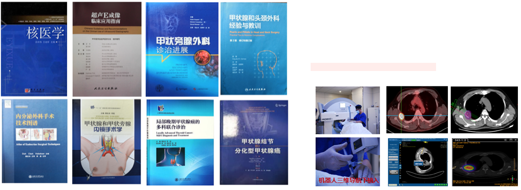(1)主要针对甲状腺癌从基础、应用基础、临床、康复进行系列研究。成果包括:首次发现淀粉样前体样蛋白2(APLP2)能够通过JNK的磷酸化激活信号传导,触发基质金属蛋白酶(MMP1)表达以促进甲状腺细胞迁移;国际首次发现8个靶基因,可作为甲癌体液/组织诊断新靶点及潜在治疗新靶标;国际首次发现7个靶基因可作为甲状腺癌转移的潜在标志物,可作为甲状腺癌临床转移诊断新靶标;首次创建中国人群BRAFV600E 突变图谱、BRAFV600E TERT突变与转移规律,填补中国研究空白,指导精准治疗,多国多中心大样本临床研究(6个国家,26中心,6282例)。
