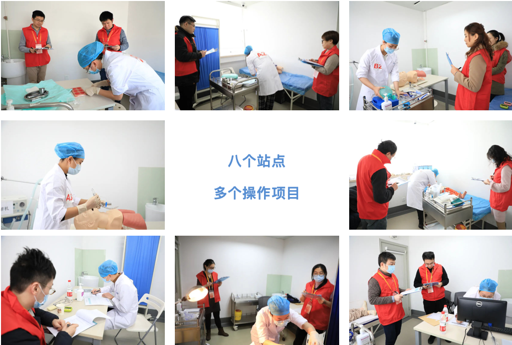 此次竞赛分临床专业理论和临床技能操作考核两个部分,通过理论知识计算机考试、临床技能多站式考核进行综合考评。选手们要在八个不同站点分别完成多个操作项目,考察范围涉及内科学、外科学、妇产科学、儿科学、急救医学等多方向专业知识,兼顾医学英语和人文关怀方面的内容。竞赛项目通过应用创新模具、标准化病人(SP)等,综合考察参赛选手理论知识的综合运用能力、临床技能、人文关怀、临场应变以及团队合作精神。