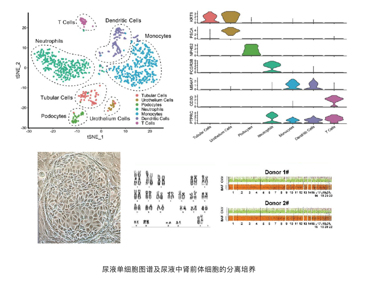日前,我院左为教授团队与解放军总医院肾脏病医学部陈香美院士、蔡广研教授团队合作,在《蛋白质与细胞》(Protein & Cell)期刊在线发表题为“Single-cell RNA-Seq analysis identified kidney progenitor cells from human urine”的论文,首次系统绘制了尿液单细胞图谱,从中鉴定得到SOX9+肾前体细胞。这群来源于肾小管上皮层的SOX9+细胞能够从健康人和慢性肾病患者的尿液中分离并扩增,并可被移植到小鼠肾内,具有重建肾小管结构、修复肾脏损伤的作用。