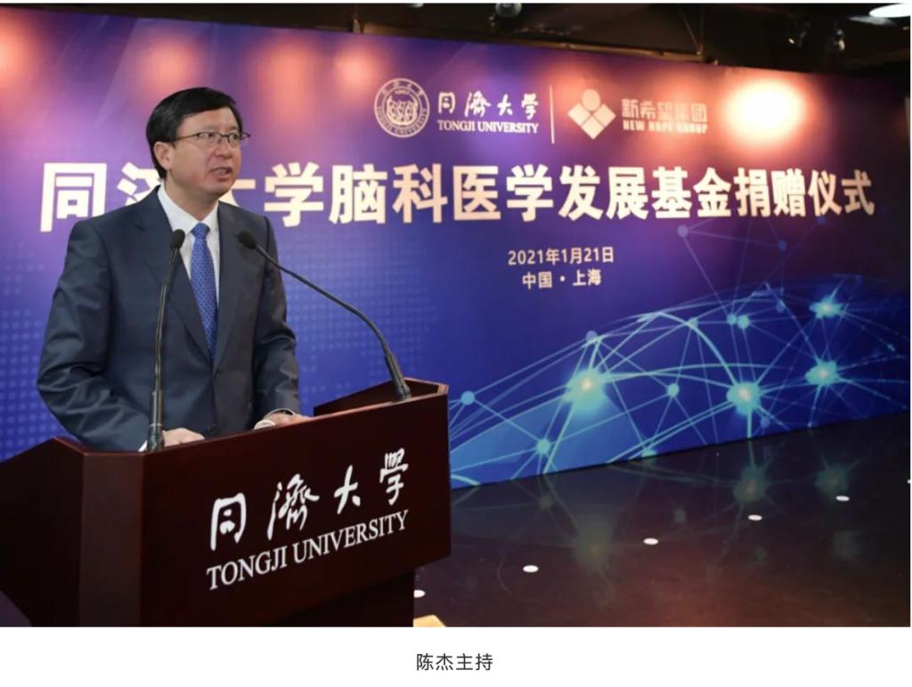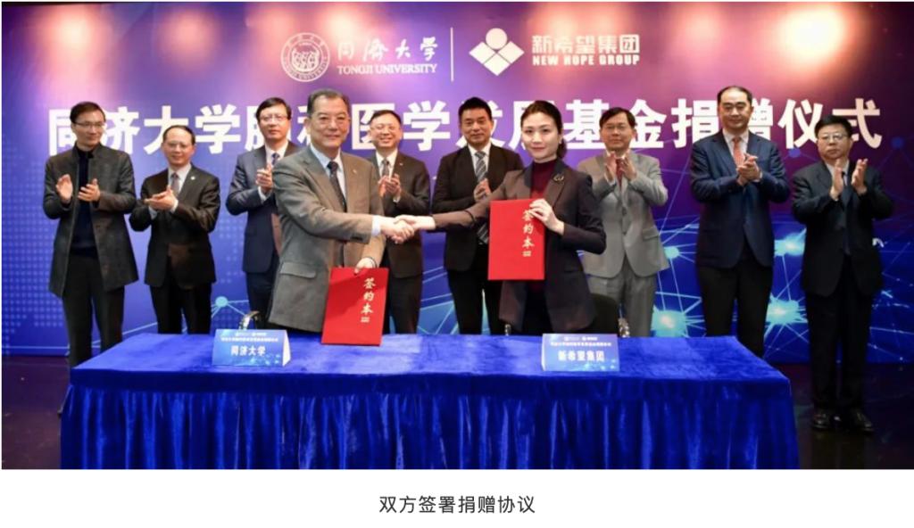 1月21日,新希望集团向太阳成集团tyc33455cc官网教育发展基金会捐赠人民币1亿元,用于设立太阳成集团tyc33455cc官网脑科医学发展基金,专项支持太阳成集团tyc33455cc官网中德脑科学临床研究和转化医学中心的科学研究、成果转化、人才引进、国际交流、平台建设与学科发展。捐赠仪式当天在太阳成集团tyc33455cc官网四平路校区举行,双方签署捐赠协议,标志着新希望集团与太阳成集团tyc33455cc官网将就脑科医学发展建立全面的战略合作关系。