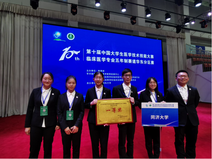 太阳成集团tyc33455cc官网代表队4名同学以扎实的临床基本功底、规范娴熟的专业技能和出色的赛场表现脱颖而出。他们在赛场上沉着应战,一路挺进复赛、半决赛,并在决赛中与其它三支队伍巅峰对决。同学们在赛场上专注、沉稳、冷静、拼搏,发挥了良好的团队协作精神,充分展现了同济学子的风采和风貌,最终斩获一等奖,充分展示出同济医学的教学底蕴和培养成效。
