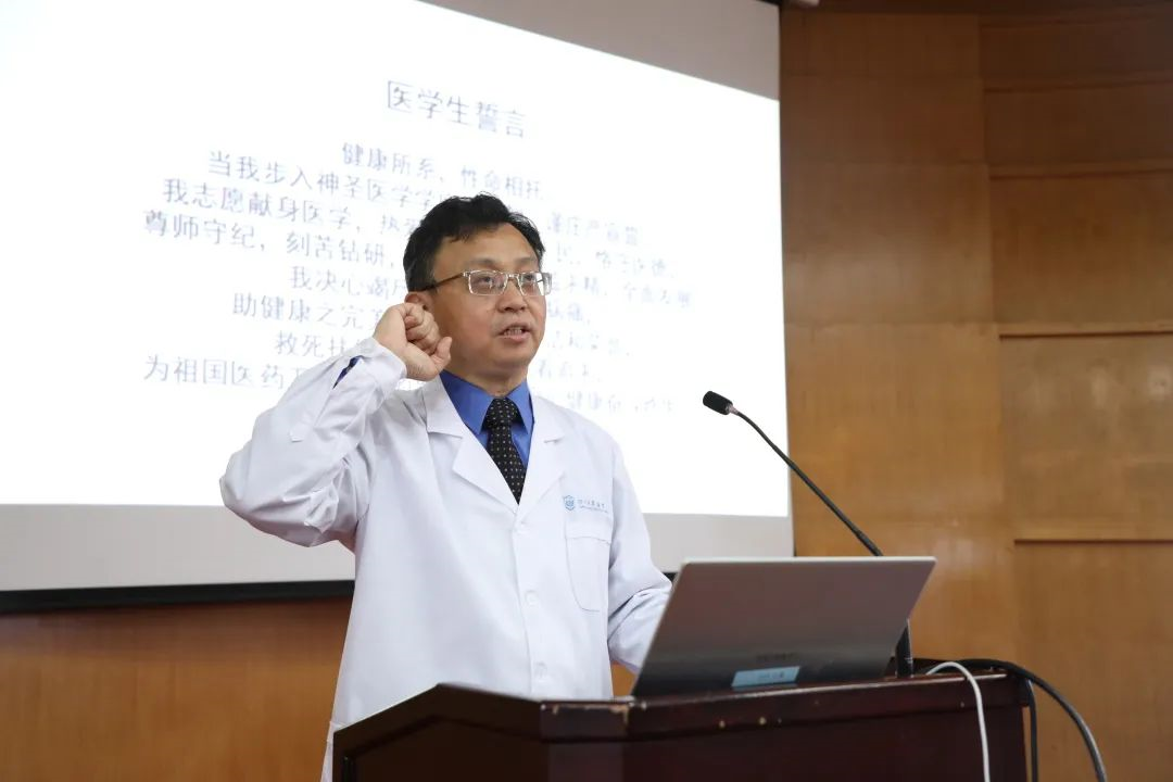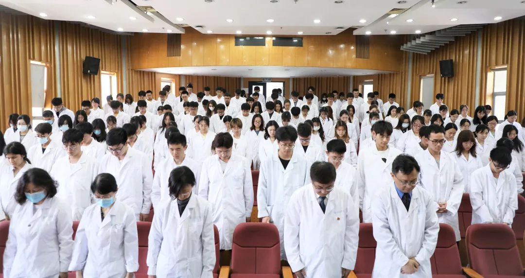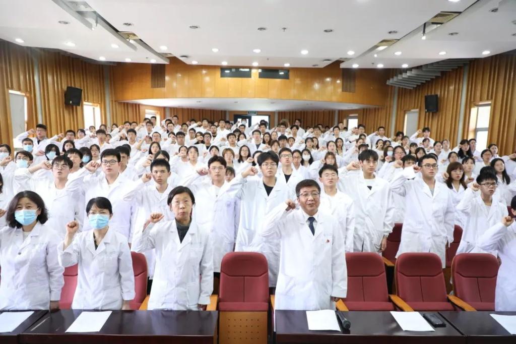 郑加麟院长带领全体师生重温医学生誓词,勉励师生不忘从医初心,刻苦学习、砥砺前行,为同济医学的复兴、祖国医学事业的发展不懈奋斗。