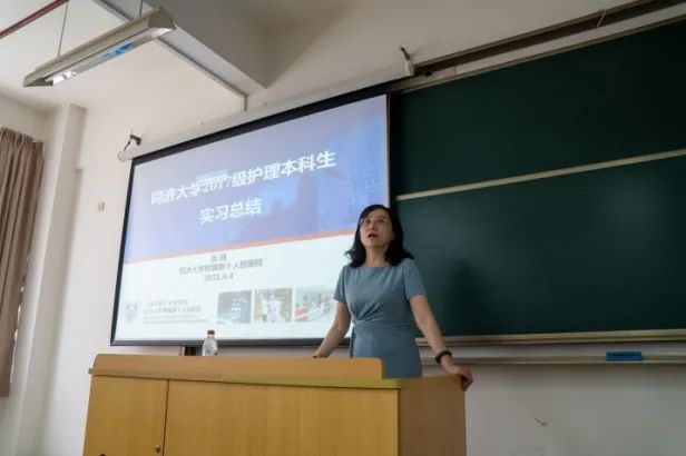 附属第十人民医院护士长和带教老师发言。她们谈到,在实习期间同学们能够按照学院和医院的要求,严格要求自己,在带教老师的指导和帮助下,圆满完成实习任务,展现了同济护理学子的良好精神风貌。
