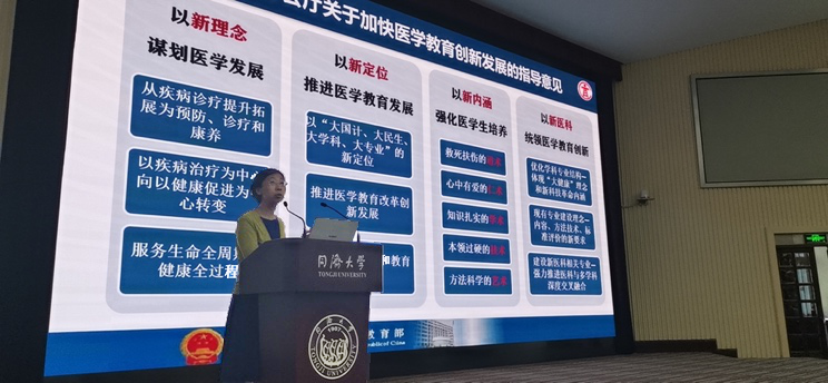 杨文卓副院长从医学教育的定位和导向、同济医学人才培养路径、提高医学人才培养质量的举措三个方面,系统地为同学们从教学角度阐释了“如何成为人民需要的医学卫士”。她立足国家对医学教育创新发展的新理念、新定位、新内涵、新医科,介绍了基于器官系统的整合课程体系、早期临床、全程临床培训体系以及创新能力培养体系等教学体系,也提醒了同学们需要注意的医学类考试项目的时间节点,使同学们明晰了医学生的未来学习规划。