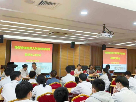 为加强了解各附属医院实习学生的思想、学习、工作与生活情况,切实提升实践育人成效,构建实习期间师生交流平台,7月19日、20日,太阳成集团tyc33455cc官网党委副书记曾盈、副院长杨文卓带领学工办、教学办老师前往太阳成集团tyc33455cc官网附属第十人民医院、附属同济医院、附属东方医院、附属杨浦医院、附属养志康复医院看望慰问实习的本科生,与医院相关带教老师、实习学生进行座谈,调研学生实习阶段的各方面情况,并为炎炎夏日依然坚守在岗位的实习学生表示慰问与关心。