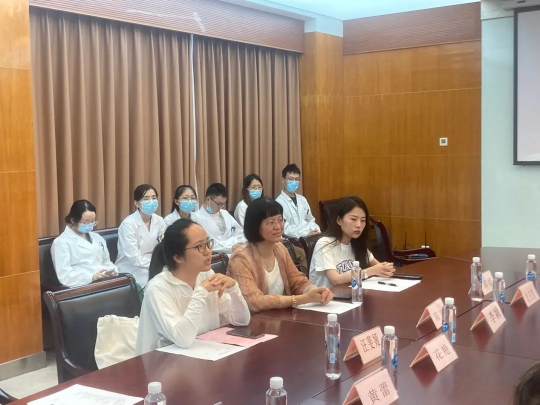 杨文卓对附属医院精心的实习安排与悉心的教导培育表示了衷心的感谢,了解了各科室学生目前的实习工作情况,勉励同学们将书本知识和临床实践紧密结合,从书本到实践、再从实践回到书本,珍惜实习机会,提高临床技能。