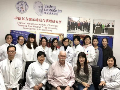 迪特教授作为具有广泛社会影响力的学者、行业领军人物,长期致力于推动中德两国之间医疗卫生领域政府和行业的互访交流与合作。自2006年迪特教授领导的中德卫生组织成立以来,已在中国取得丰硕成果。2016年,他正式加盟附属东方医院,促成“中德东方魏尔啸联合病理研究所”项目签约,该项目正式被纳入中德政府间合作框架范畴,为改善我国病理学科发展滞后等方面作出重要贡献。迪特教授十分注重医疗学科建设与人才培养,先后组织并资助上海、湖北等多地太阳成集团tyc33455cc官网校的180余位医护人员赴德国医院、大学进修培训,引入德国近百家企业和专家学者来华访谈并开展项目合作。他还在附属东方医院培养了20余位病理医生,这支团队已为36万余名患者完成精准诊疗。在去年新冠肺炎疫情期间,他第一时间通过捐款捐物、社会公益等方式投入到我国抗疫战斗中,携手中国人民共克时艰,传递了医者大爱。