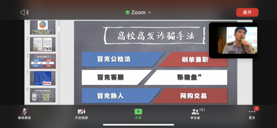 当前网络发展十分迅速,骗子的手段也逐渐多样化,由于高校学生防范意识较弱,成为骗子的首选对象。当下,常见诈骗手段主要分为6种,包括冒充公检法,冒充客服,冒充熟人,刷单兼职,杀猪盘,网购交易等。警官通过举了一些现实中的诈骗例子,让我们了解到了当前骗子大致的欺骗手段,加强了我们防范意识、提高我们对诈骗行为的识别能力与自我保护能力。