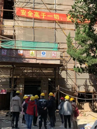 今日我们在学校老师组织下,进行了现场参观,老师还介绍了工期、具体的实施步骤以及消防安全等,切实地感受到了此次工程之大,任务之重以及质量之优。期间我们就前段时间油漆味道相关问题做了深入沟通,基本达成一致,老师也说到本次工程所用均是无害用品,如今后刷防锈漆一定提前告知,让学生做好预备和防护工作等。