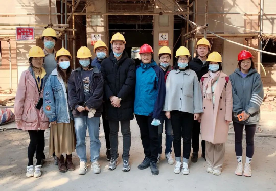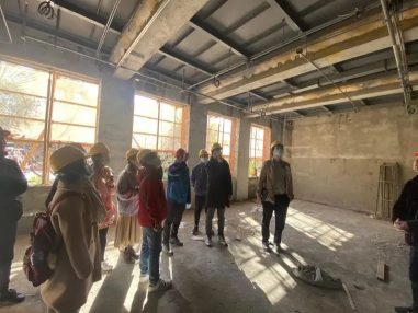 沪西校区管委办主任徐纪平带领同学们参观了第三教学楼外围的施工工地,为大家介绍了第三教学楼的历史和变迁。之后,在采取安全防护措施下,徐主任与施工单位负责人一起带领同学们进入第三教学楼。他们向同学们介绍建筑的原有木制承重结构,深入浅出地分析了原有结构的安全隐患及目前钢承重结构改建计划的技术难度和施工细节,并带领同学们参观了已完成部分和原有结构的对比,让同学们有直观的感受。